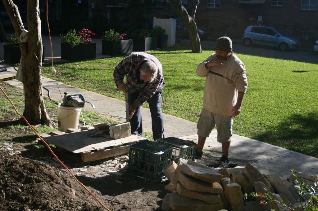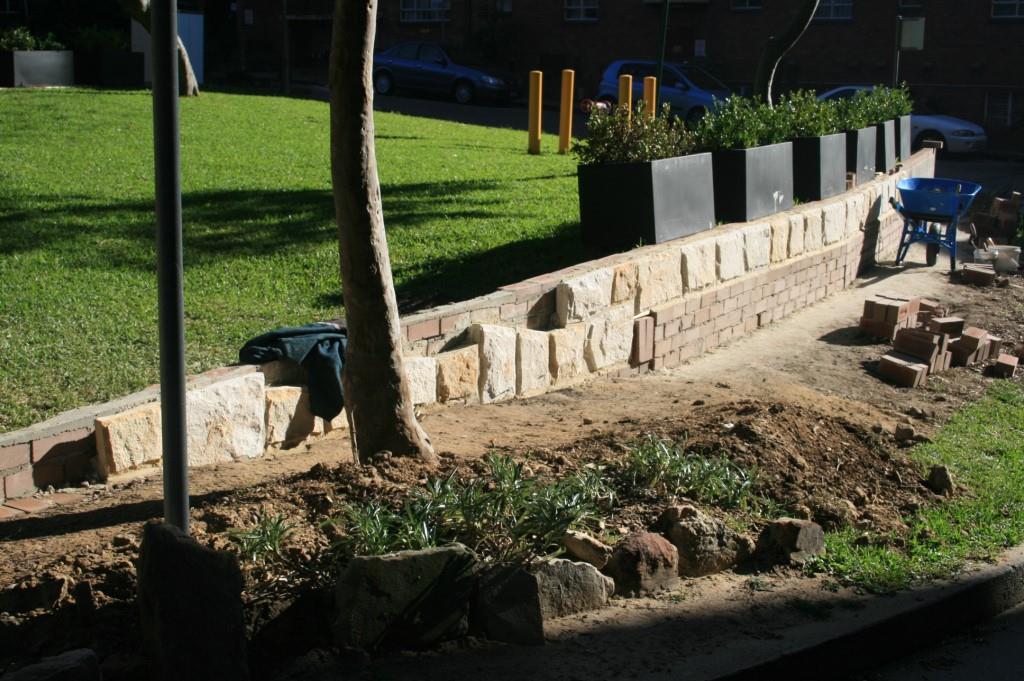 Partialially Built Sandstone Wall June 2014Block wall 001